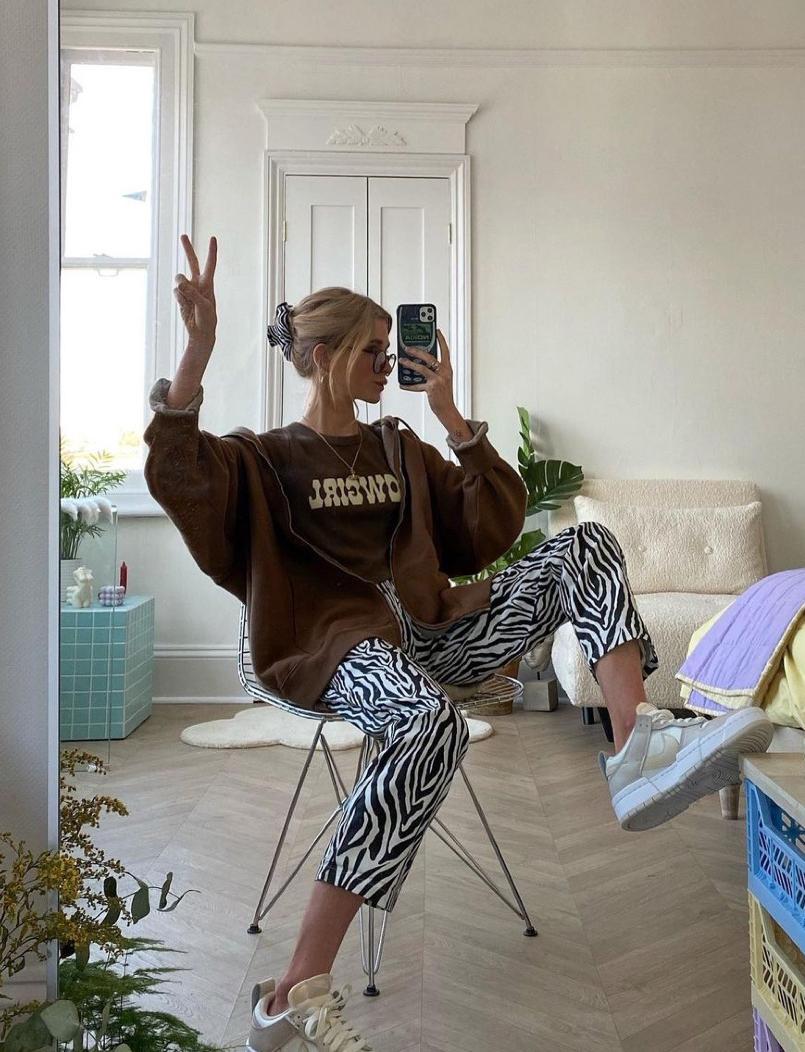 The matching of the lower body of the navel-baring sweatshirt is also very skillful. You can choose according to your actual situation. For girls with thick thighs, a pair of high-waisted wide-leg trousers is the best choice. You may wonder why you don’t choose low-waisted trousers. Low-waisted trousers can reveal more of the waist curve, but they also have the disadvantage of shortening the leg length, so High-waisted pants are more suitable.