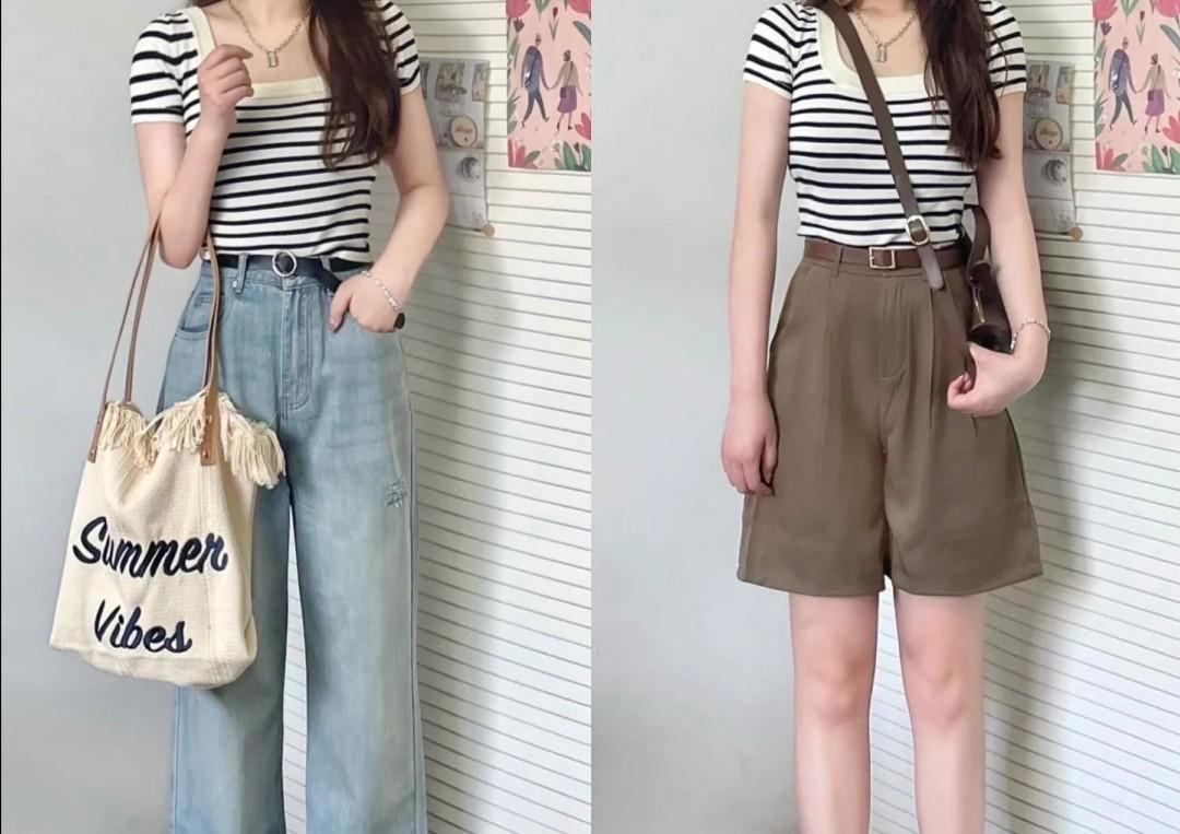 You can choose a variety of items to add to your body in summer. Striped T-shirts contain the effect of reducing age and have full personality charm, but will not It looks very fancy, especially the black and white striped T-shirt, which makes the outfit more elegant.