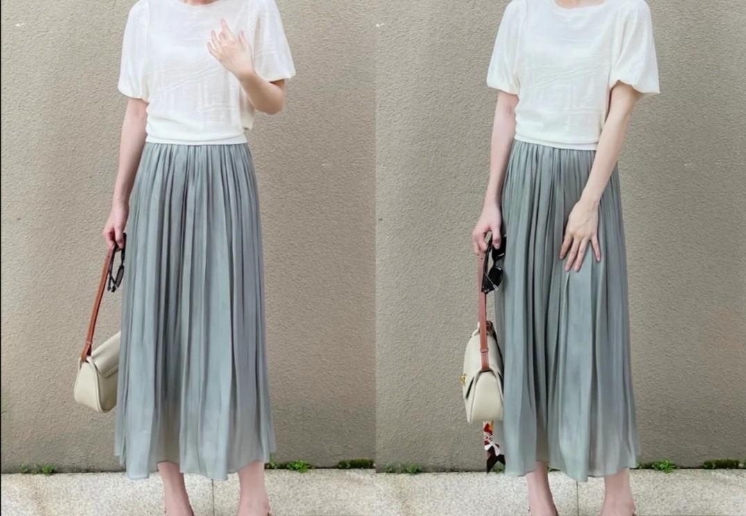 The biggest feature of the white T-shirt is that the shape is pure and clean. It can be matched with a gray or other basic color skirt. As women age, they can always use these two A single item.