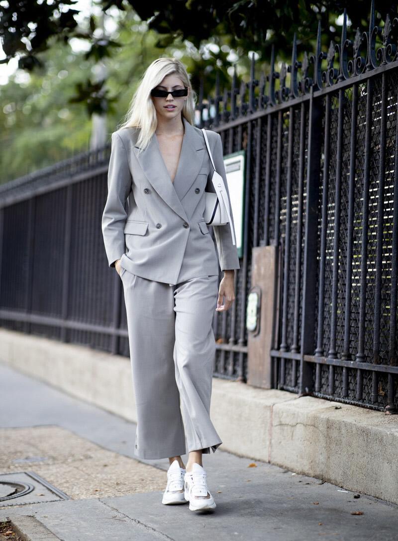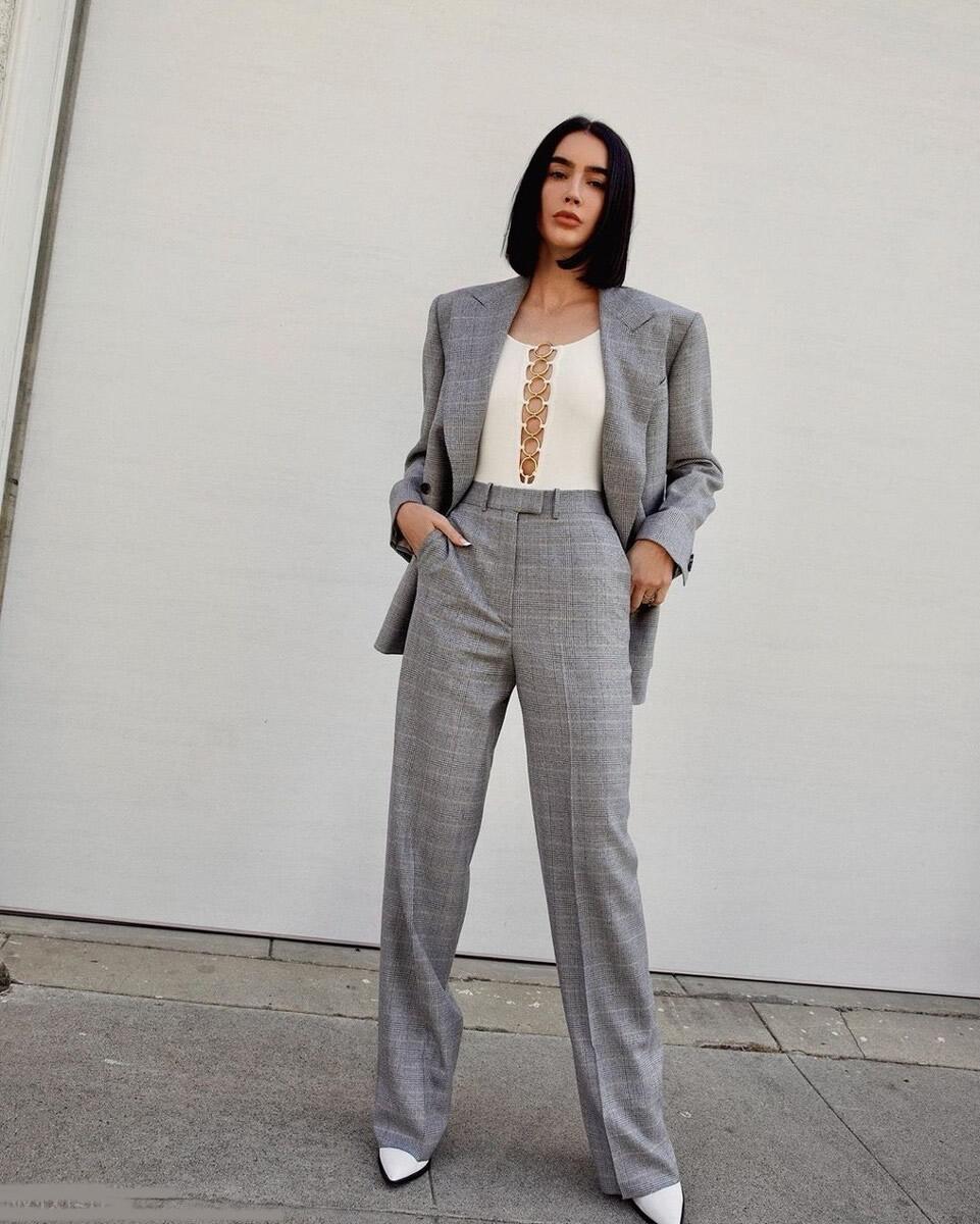The past two years have been very If you want to wear a matching color, you can pair gray pants with a gray top. Save a little trouble and get ready-madegrey outfits. For example, a gray suit. The top is a gray waisted small suit, and the gray pants are straight-leg trousers. They look simple, elegant and high-end. As for shoes, white thick-soled sneakers are very popular this year, but of course they also look great paired with loafers or high heels.