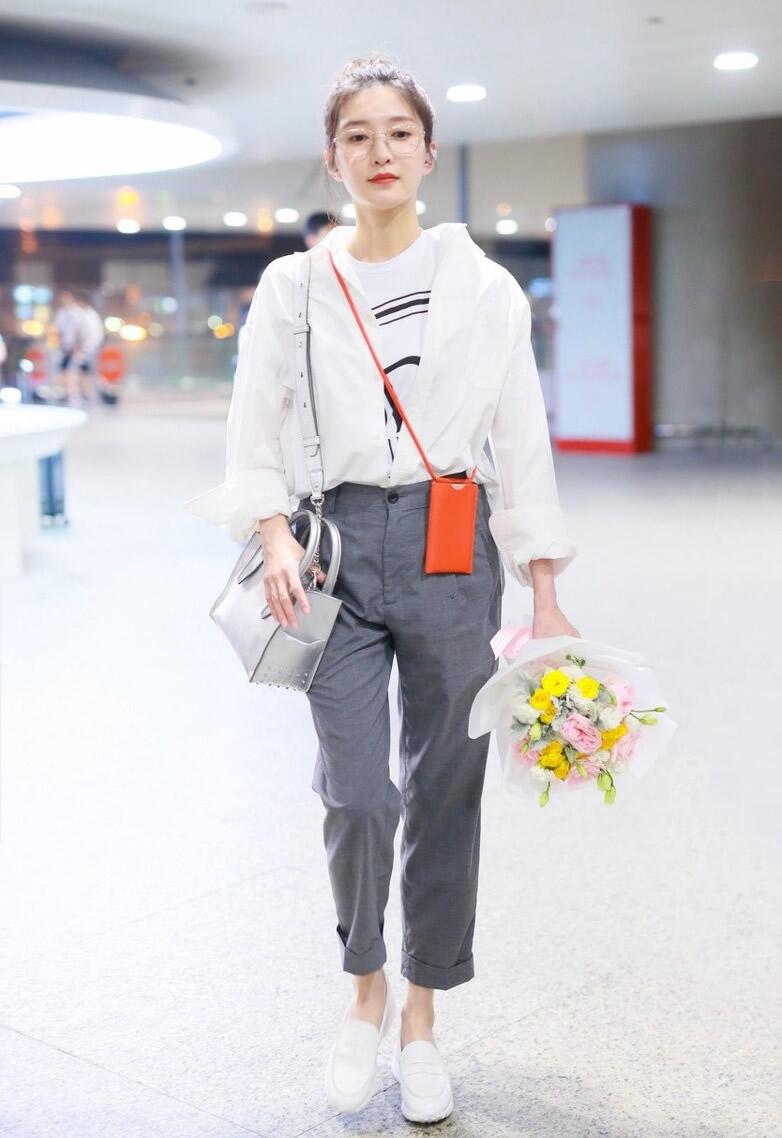 Pair gray trousers with a gray top. Wear it in the same color, which is simple, refreshing and high-end.