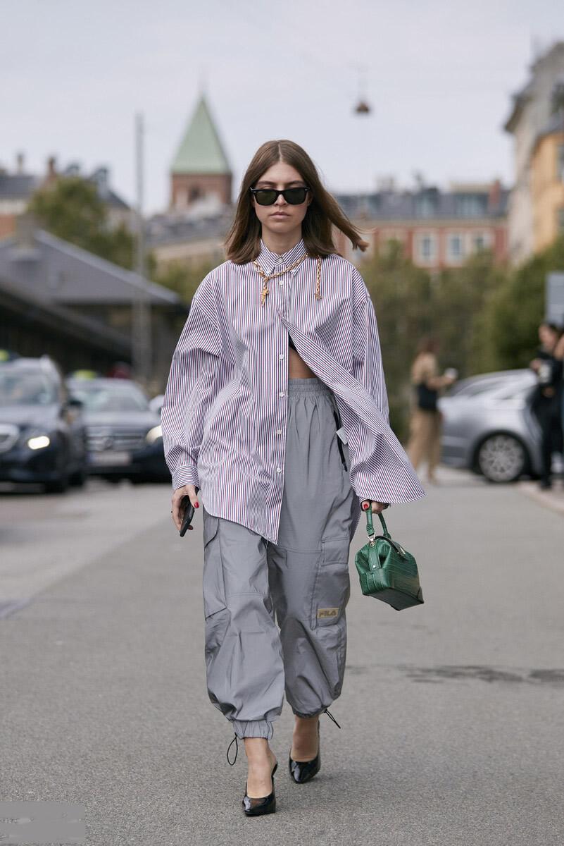 Gray is a versatile color , in principle, a pair of gray pants can be paired with a top of any color. Likepink and purpleare both good. In the past two years, it has been very popular to wear a purple top with gray pants. For example, wear a light purple shirt that is slightly longer, paired with a pair of gray drawstring overalls. Casual yet sweet and fresh.