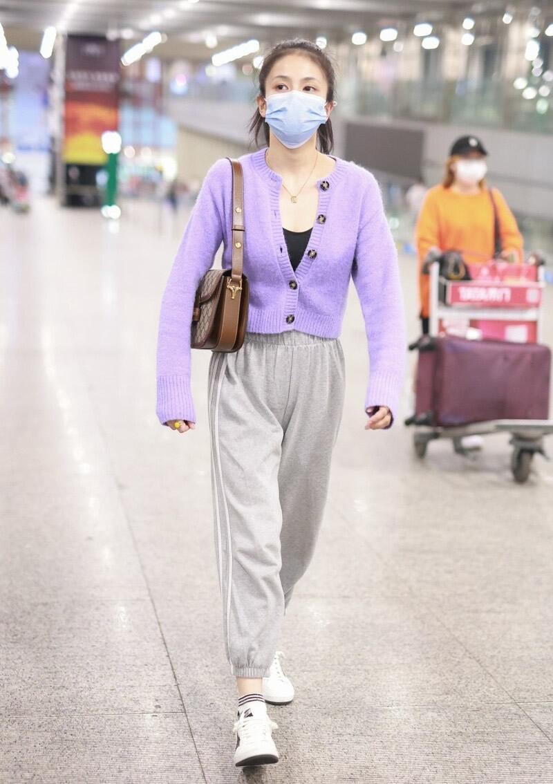 Purple cardigan is also a very popular item, so pair this purple cardigan with a gray one The pants are very nice and come in any gray color. However, the lighter the color, the more refreshing it is. As for the pants type, gray straight pants, sports pants or overalls are all acceptable.