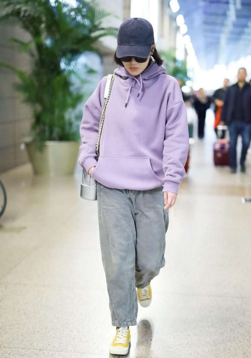 Many of my friends have purple sweatshirts, so pairing a purple sweatshirt with a pair of gray pants looks pretty good. , the pants can be straight pants or sports pants. If the gray pants are very loose, it is best to roll the hem of the sweatshirt inwards. This will be neater.