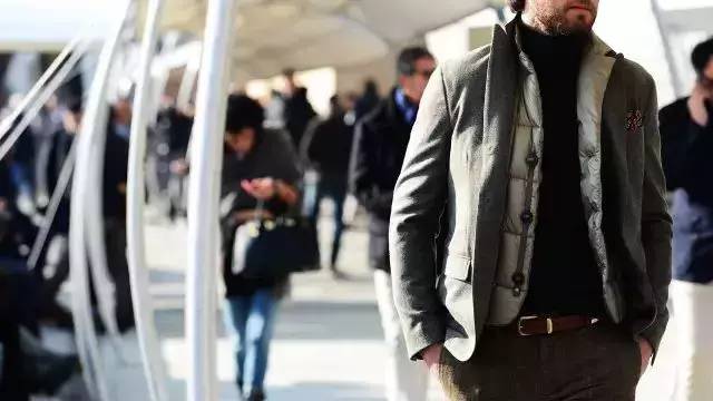 You can simply use a down vest to replace the ordinary vest inside the suit, or unbutton the suit jacket and add a layer directly underneath.