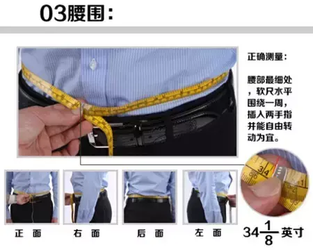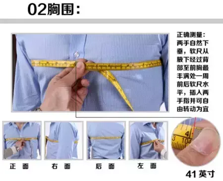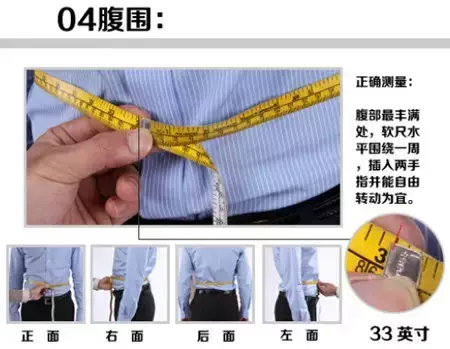 3. When measuring the chest circumference, the arms of the person being measured should be vertical, and when measuring the waist circumference, the belt should be loosened.