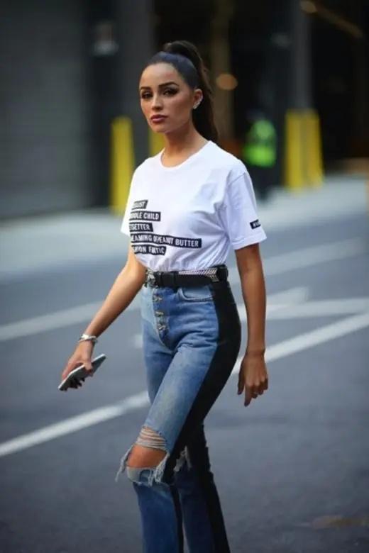 The thinking in the fashion circle is always beyond imagination. When ordinary people think that clothes should fit well, oversized tailoring designs such as super long sleeves and wide shoulders often appear on the show, even for daily wear. The T-shirts also tend to be loose-fitting. Why on earth should I buy a T-shirt one size larger? This is a fashion secret that all fashionistas know. Slightly larger sleeves and shirts can create the illusion of slimmer limbs. Whether it is to play with the “missing lower body” or paired with high-waisted trousers, it will help to slim down the body. With long body proportions, this T-shirt can create a frank and natural feeling, contrasting with the elegant and feminine skirt. Watch the dressing demonstrations of celebrities and fashionistas, and you will instantly understand the benefits of sizing up a T-shirt!