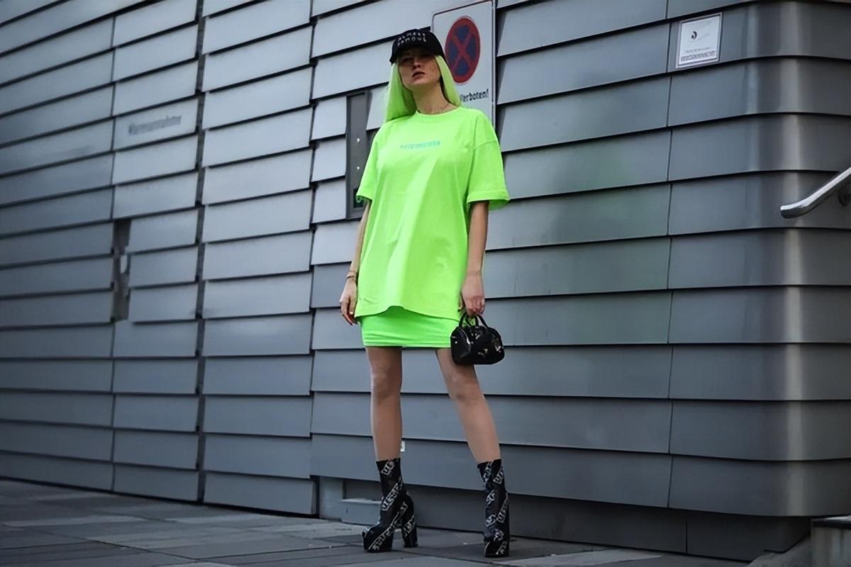 In addition to the basic black and white T-shirts, fluorescent T-shirts are highly sought after by fashionistas. The eye-catching colors show uniqueness. Tone on tone is the most fashionable when paired with short skirts of the same color.
