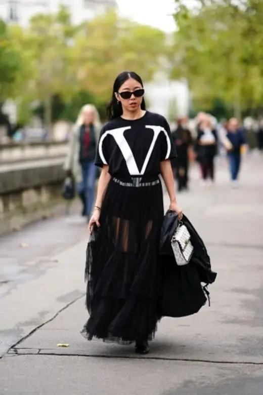 T-shirts are suitable for any age, and wearing gauze skirts on the lower body can help enhance your aura. The eye-catching second-generation celebrity Ren Qingjia (Simon Yam’s daughter) is a fan of this dressing method. , showing off the incredible long legs is really eye-catching.