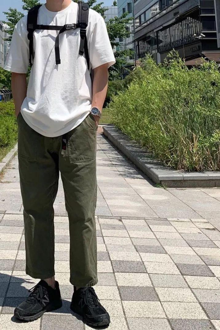 In addition to the classic black and denim, cargo shorts are also a favorite of men. Paired with a white T, Very handsome.