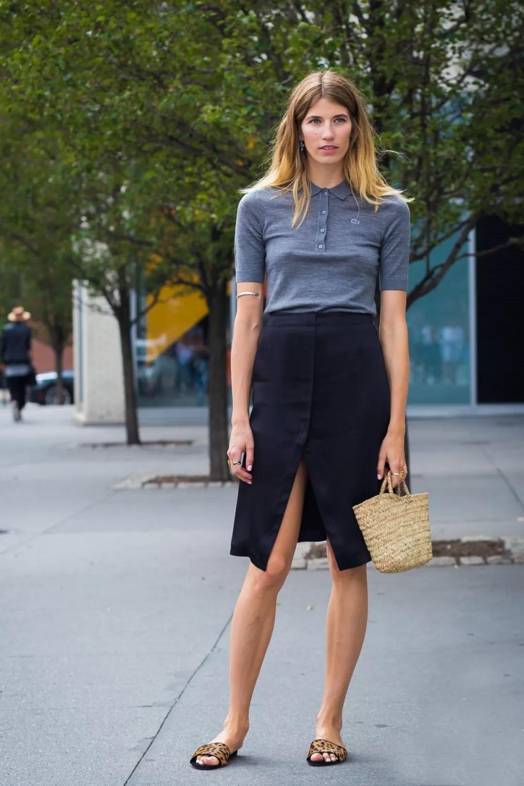 Hip skirts and POLO shirts are also very good partners. The slit design in the middle makes the legs longer. Coupled with the simple style of the POLO shirt, it looks very attractive. Comfortable.