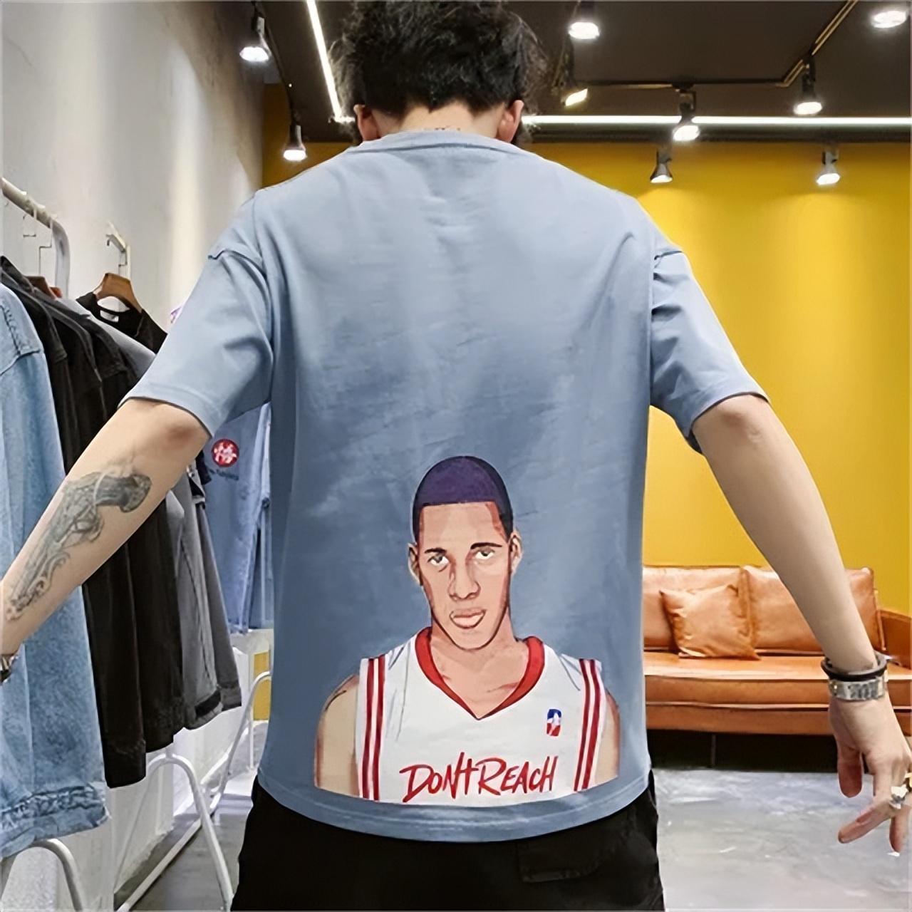 This trendy printed Douyin popular T-shirt uses earth heat transfer technology, fashionable and fresh, pure cotton fabric, loose fit, comfortable and skin-friendly. The only regret is that this T-shirt can only be worn up to 180 pounds. If you wear it over 180 pounds, it may be a bit tight.