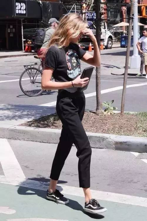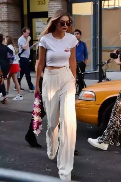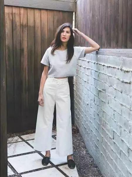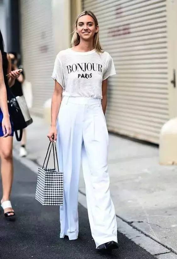 In addition to their own fashionable label and super aura, wide-leg pants are also better at hiding fat and slimming, and modifying leg defects. Paired with a simple white T, it is simple and fashionable.