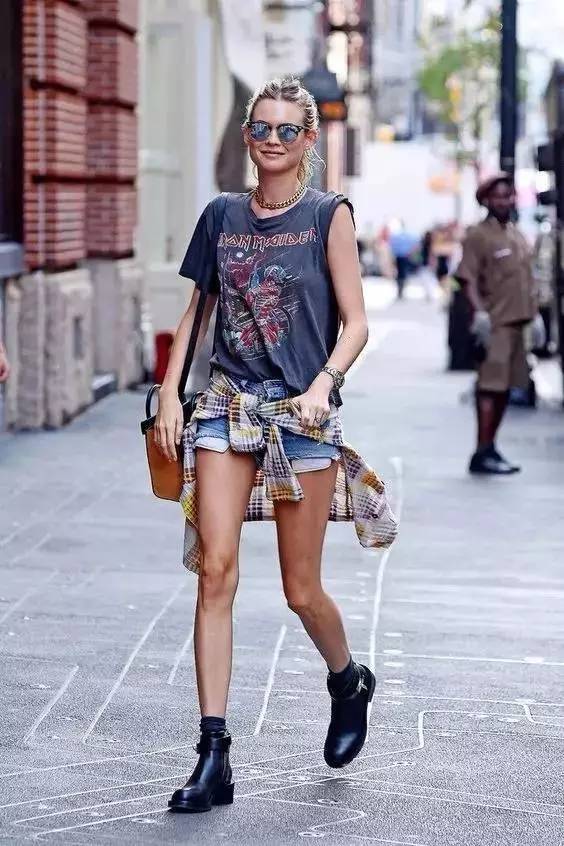 The combination of T-shirt and shorts is refreshing and comfortable. If you want to make your look more attractive, you can add a shirt tied around your waist or wear a long jacket to make you walk with style.