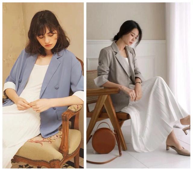 When the weather is colder, You can also pair a T-shirt with a suit and then pair it with a skirt. This is also a commuting-style dressing routine, elegant and neat!
