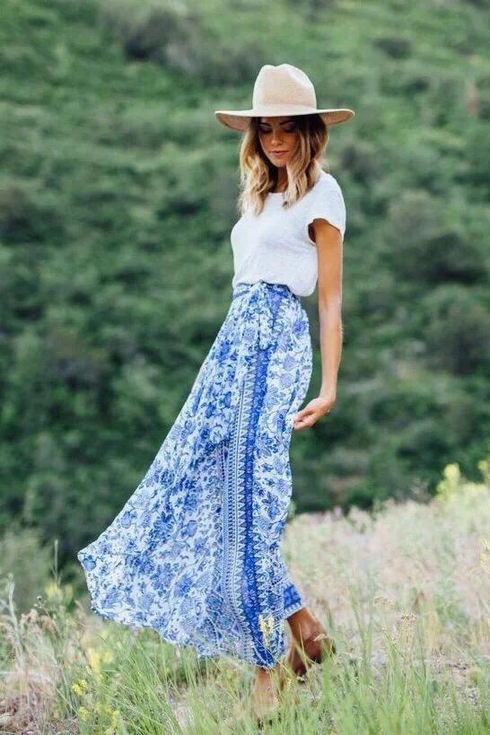 When it comes to dressing styles suitable for travel and vacation, many people will think of bohemian style. This style can also be created with T-shirts! Pair a T-shirt with an exotic skirt and a straw hat to create a bohemian look, elegant and feminine!