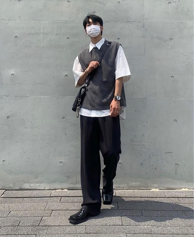 Layering has always been the most common technique for T-shirts, and this dressing technique can be used throughout the year. Use a gray vest and layer a white T-shirt underneath to create a layered look with different lengths, making it look more fashionable.