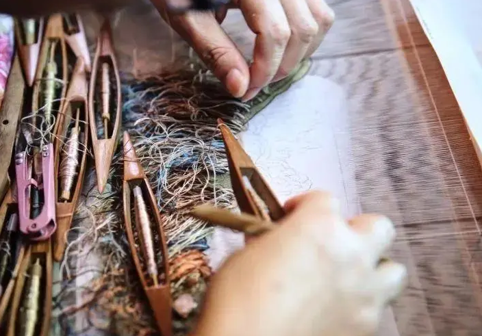 The reason why Yun brocade has become the number one brocade in China and cannot be replaced by machines so far is its unique weaving technology: using the weaving technique of opening the warp and breaking the weft (also called opening the warp and returning the weft), Breaking through the pattern limitations of traditional brocade, you can weave patterns as you like.