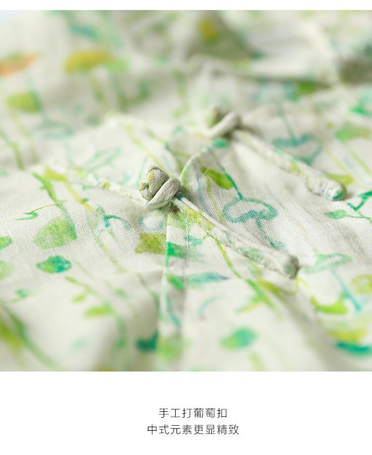A retro literary coat with fresh patterns and colors, which has a full age-reducing effect and makes the upper body look elegant. The light green printing is printed bits and pieces on the light yellow base fabric, which can present a gentle effect, and the buckles are three-dimensional and exquisite.Embroidery on clothes will highlight your taste. Paired with light-colored pants, it will be more refreshing this summer.
