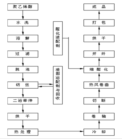 - Before decomposition, polyvinyl alcohol has no obvious molten state, so The solution spinning method is used, and wet spinning using water as the solvent is often used. The preparation process of polyvinyl acetalized fiber includes the preparation of spinning solution, spinning and finishing