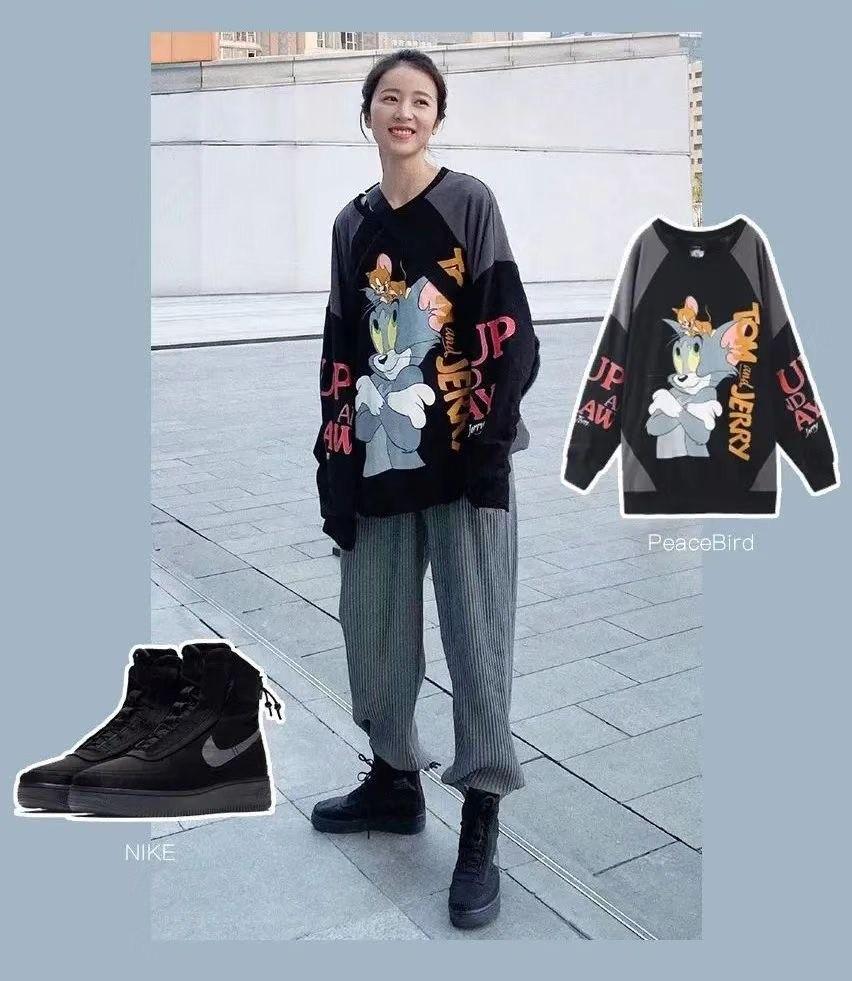 To say that the most versatile and best-wearable item is definitely a sweatshirt. The silhouette of the sweatshirt is obviously loose, which can make you look slimmer and flatter your figure. At the same time, it has a casual feel. It can also better show the effect of reducing age.