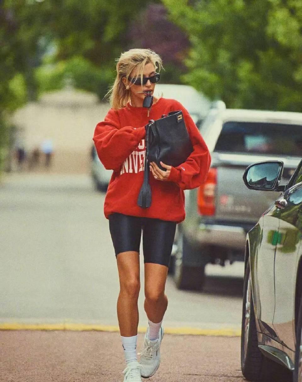 For round-neck sweatshirts, the addition of letter printing and the color matching style can still give an obvious retro feel, and in terms of matching , in order to more obviously highlight the retro style, it is necessary to enlarge the silhouette of the entire outfit, such as matching a sweatshirt with cycling pants, and changing the silhouette of the upper and lower pants to create a retro style.