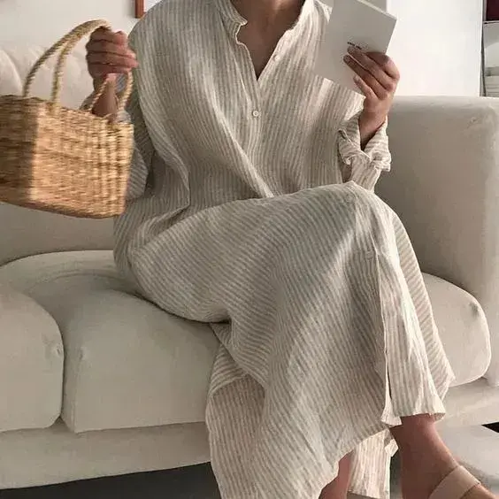 亚麻,其实是一种一年生的草本植物,人们取它的纤维织成的面料也就被称为是亚麻面料,是人类最早发现并且使用的天然纤维,已经有一万多年的历史,可以说,亚麻是最古老的天然纤维,也是人类时尚的先驱,被称为是“纤维皇后”,做成的服装自带古朴自然的色泽,备受追求自然的都市人喜爱。