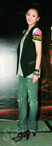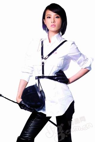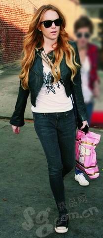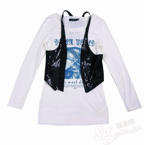 Pair a long T-shirt with a one-line collar with a long neck hanging? Slim-fitting jeans and shiny super short boots add points to your style?/P<.