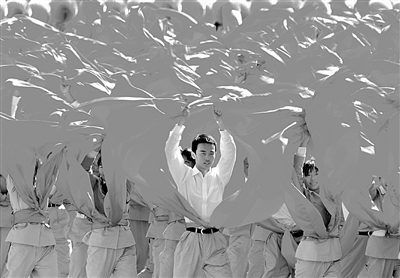 October 2009 On the 1st, in Tiananmen Square, a phalanx of students dressed in black uniforms of the Yiwen Group was inspected by the people across the country.