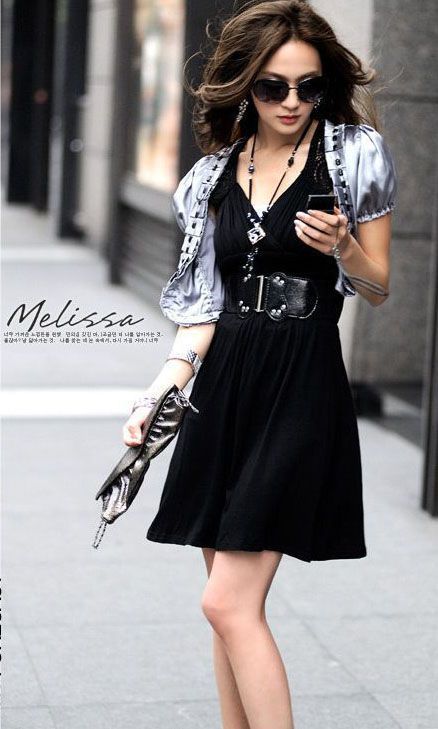 A black dress paired with a silver-gray high-waisted jacket is a very Korean-style office look. Pair it with a delicate belt to make a statement. The rattan style or the metal bead style can create two different temperaments!