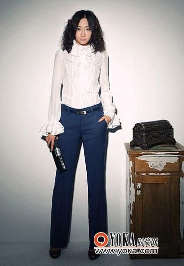 White shirt with stylish cut It can be worn outside trousers, giving the average working woman a smart temperament, and it is also a way to show off her good body. Adding some luxurious palace-style designs to the neckline and cuffs can slightly soften the fragile style and make it more feminine.