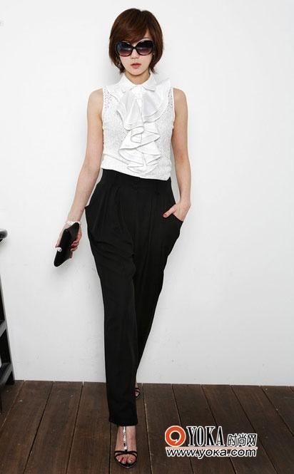 Retro styles were a big hit in previous years, with high waists, prints and High collar designs are a great way to add a retro touch. A white shirt with ruffles on the collar and front will make you feel the elegance and sweetness of the wearer.