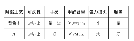 CP: padding flame retardant finishing liquid → pre-baking → baking → washing → drying → pre-shrinking → finished product (general dyeing factories can do this)
