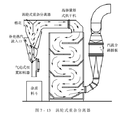 (2) The heavy-duty separator is used in conjunction with the negative pressure pull-through tower dryer to provide a hot air injection point for the second drying step. 2/3 of the air flow in the tunnel dryer is used to lift the cotton from the cotton mold feeder, and the remaining 1/3 of the hot air flow is used at the bottom of the turbine-type heavy-duty separator to separate the cotton from the cotton mold through two injection points. Air flow is injected into the sub-cotton.
