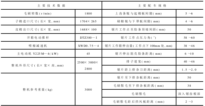 (2) The main technical characteristics of the MY-96 sawtooth gin