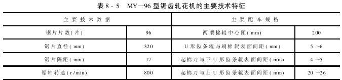 The main technical characteristics of the MY-96 sawtooth gin are shown in Table 8-5.