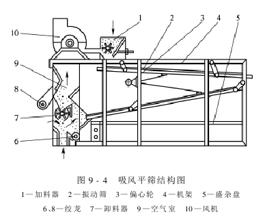 Suction The structure of the flat screen is shown in Figure 9-4. The cotton seeds enter the upper screen surface of the vibrating screen from the feeder (screen hole diameter 6mm), and the stiff flaps and large impurities are screened out. There is an air suction channel on the side of the feeder. Can absorb part of the fine dust. The cotton seeds enter the front section of the lower screen (the screen hole is a long hole of 3mm×50mm) to screen out mud, sand and long impurities, and the rear section (the screen hole is a circular hole with a diameter of 6.35mm) screens out some withered cotton seeds and broken pieces. son. The mud, sand, long impurities and shriveled particles are screened out by the two-layer screen surface and fall into the trash tray. They are then cleared out by people or pushed out by a screw conveyor.