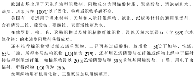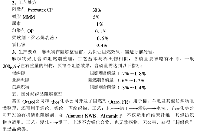 Cellulose fiber is the earliest fiber to be treated with fireproofing, and it is a much studied topic in fireproofing finishing. At present, the fireproof finishing technology of domestic cotton fabrics is relatively mature, and fireproofing agents can basically be self-sufficient and industrially produced.