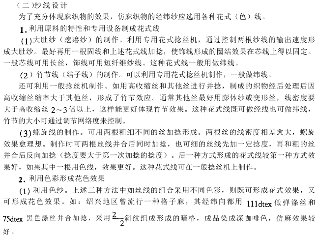 1. Design of the main structural parameters of chemical fiber linen-like fabrics