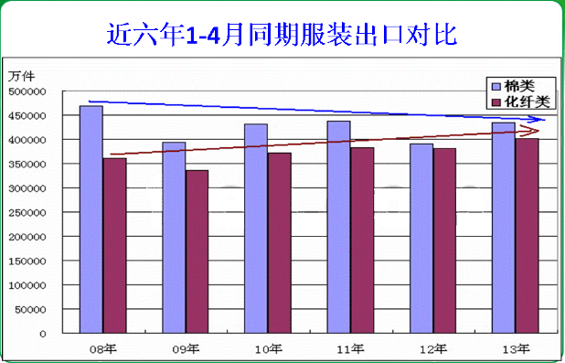 Since 2011, the export volume of chemical fiber workwear has exceeded that of cotton. However, the total export volume of workwear in 2012 was lower than that in 2011, and the proportion of chemical fiber continues to rise.