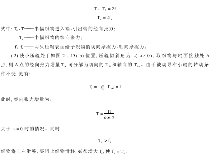 (1) Put the small pressure roller in the position shown in Figure 2-15(a), α=0, analyze this Force balance relationship of half fabric: