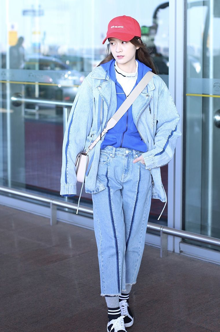 Bright-colored hooded sweatshirts are also very popular among fairies. They are not only versatile but can also brighten the skin tone. The key is to wear it casually to look youthful. Pairing it with a top with denim splicing elements will enhance the fashion index and give you a full sense of age reduction! Put on a baseball cap and transform into a fashionista in minutes!