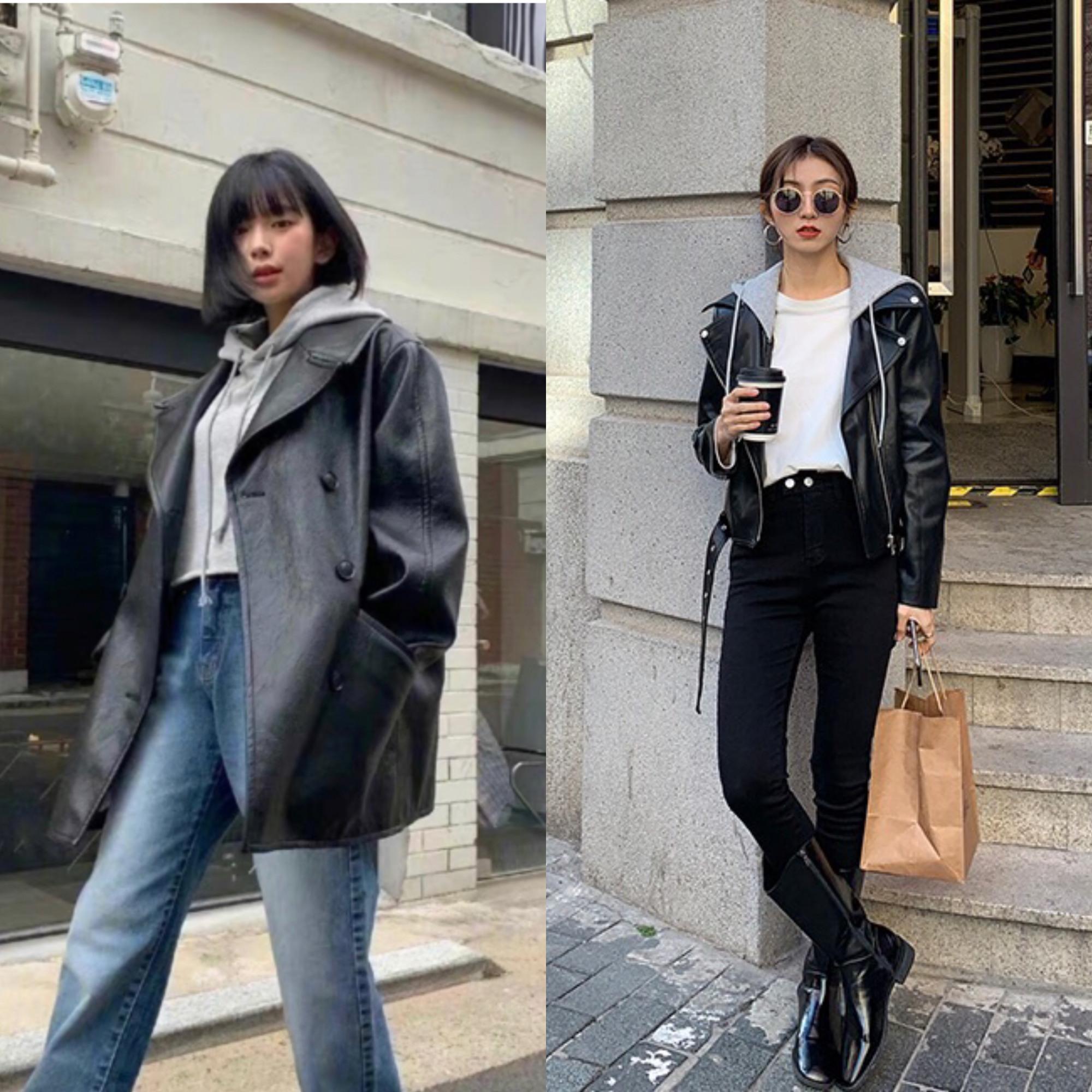 Hooded sweatshirt gives people the feeling of youthful vitality, so what kind of sparks will this casual style collide with a cool leather jacket? The black leather jacket is paired with the same cool gray color, which looks very coordinated. The combination with blue jeans adds a sense of fashion and trend, and is handsome and cool without losing the youthful atmosphere!