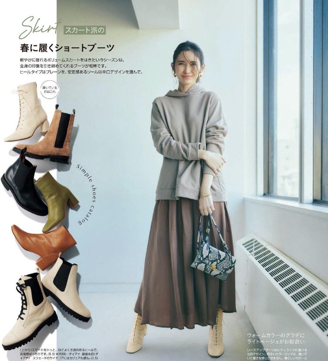 Mature women wear a hoodie and sweatshirt with a long skirt, making them look comfortable and generous. Wear a pair of short boots under your feet to keep warm in spring. The styles of shoes can be more diverse. If the whole body is relatively simple, you can choose Shoes with a sense of design or color can be more eye-catching.