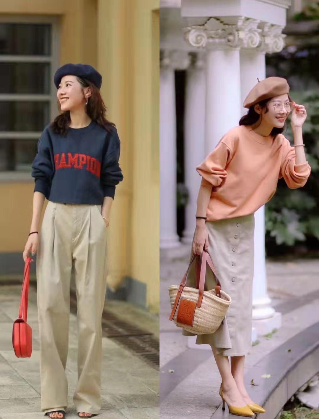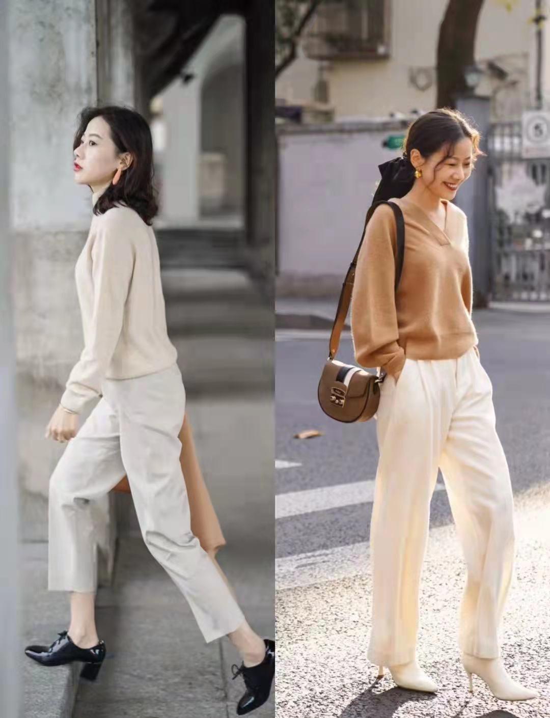 In early autumn, the matching of sweaters is relatively simple. Regarding the choice of color and lower body, pants The dress looks more neat and capable, while the skirt is more gentle.