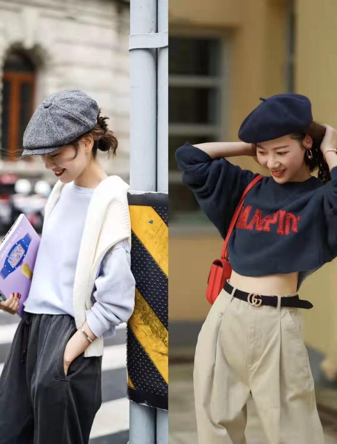 Choose a light blue sweatshirt with dark wide-leg pants, a short sweatshirt, high-waisted trousers, and white Knitted items layered as a shawl feel more fashionable. This layering method has certain practicality in autumn and makes the look more interesting.