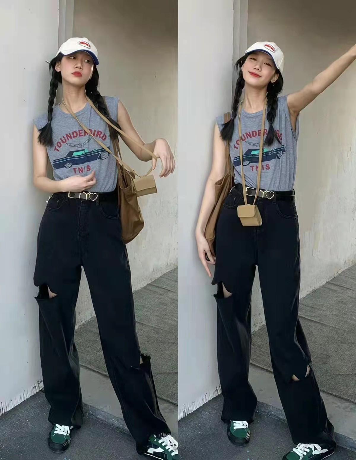 If you want to match it more fashionably, you must pay attention to the style, color and version, as well as the position of the shoulder line, are very important.Pair a sleeveless T-shirt with trousers to look taller and slimmer.