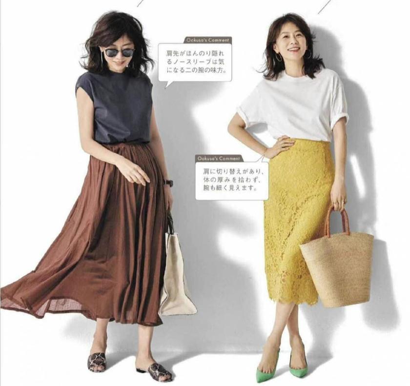 The choice of T-shirts is very flexible and there are not many restrictions on dressing. Women of different ages can find a way to dress that suits them. . If you like those elegant looks, you can wear various T-shirts and knee-length skirts.