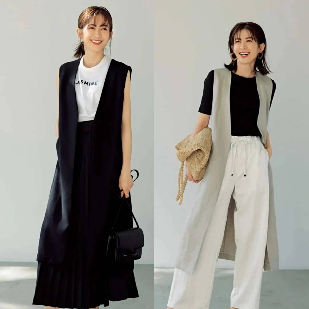 The most basic black or white T-shirts have always been the most popular, but they may also lack breakthroughs in color matching. To show an obvious sense of monotony, you might as well layer a long vest on the outside. In addition to enhancing the layering, it can also look more chic.