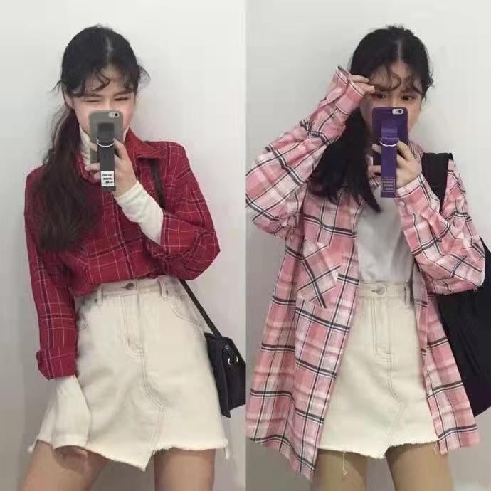 Pink plaid shirt, paired with this type of skirt, can highlight a sweet style.
